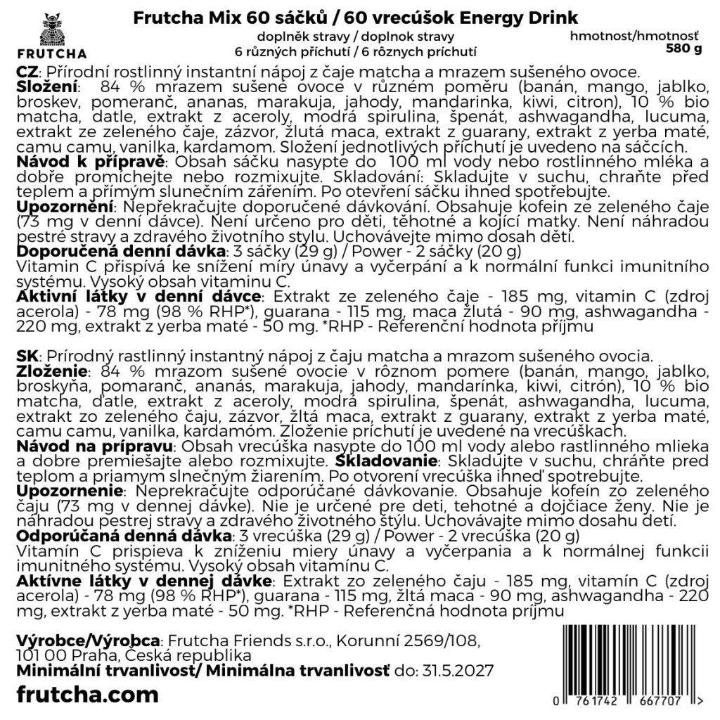 ✔ 60 sáčků Frutcha pro přípravu teplých i studených nápojů