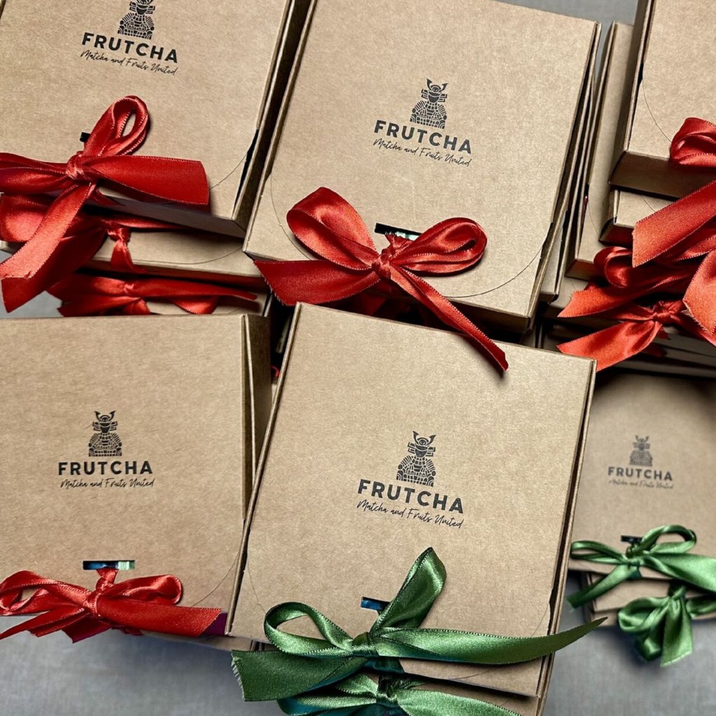 12 sáčků Frutcha (6 příchutí po 2 ks) v elegantním stylovém balení se saténovou stuhou: