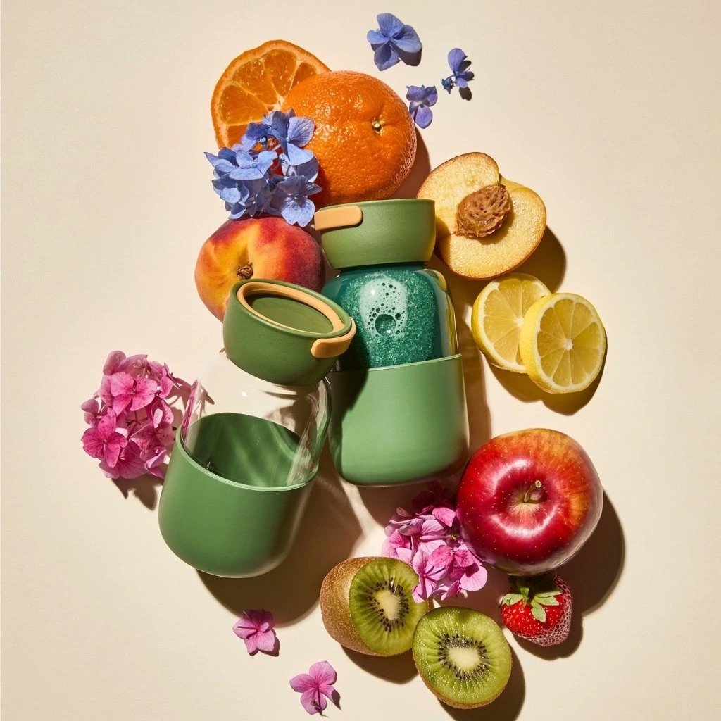 Složení: 84 % mrazem sušené ovoce v různém poměru (banán, mango, jablko, broskev, ananas, marakuja, jahody, mandarinka, kiwi, citron), 10 % bio ceremoniální čaj matcha, datle, extrakt z aceroly, modrá spirulina, špenát, ashwagandha, lucuma, extrakt ze zeleného čaje, zázvor, žlutá maca, extrakt z guarany, extrakt z yerba maté, camu camu, vanilka, kardamom.